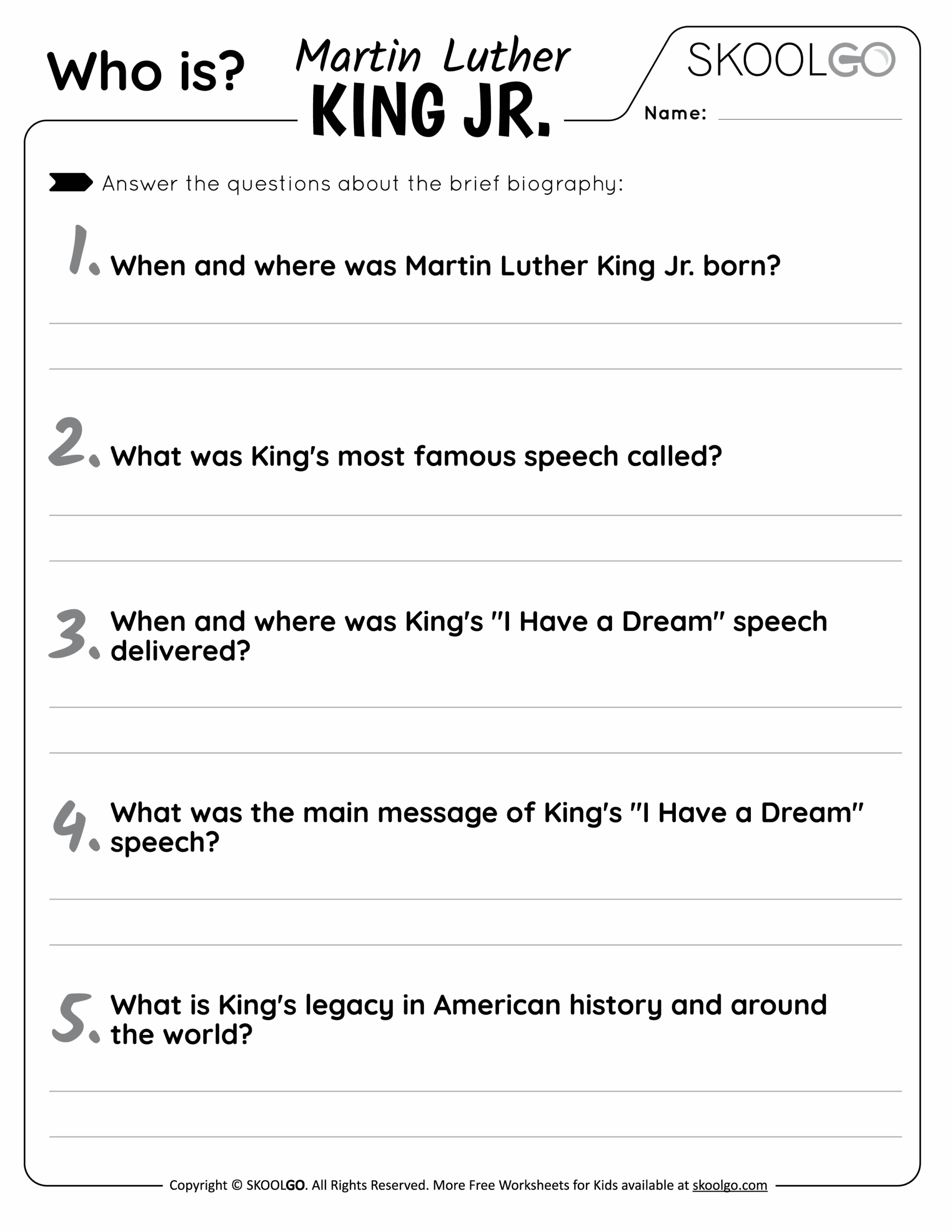 Who Is Martin Luther King Jr Free Worksheet SKOOLGO