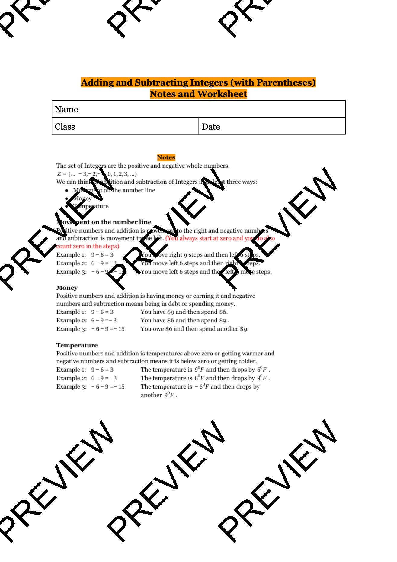 Real Life Math With Adding And Subtracting Integers With Parentheses Worksheet Complete Key Gr5 7 Made By Teachers