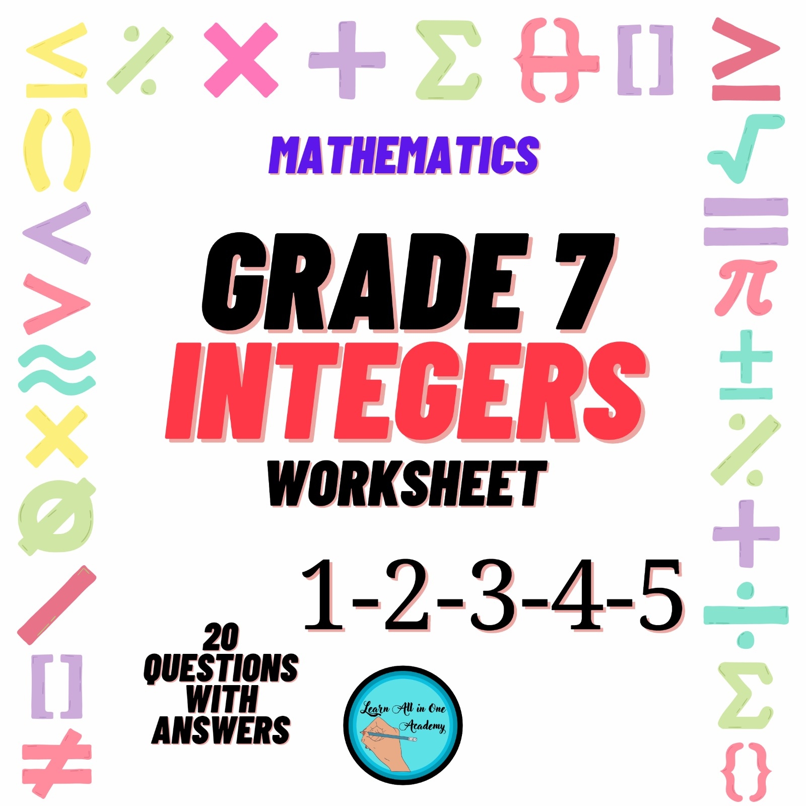 GRADE 7 MATHEMATICS INTEGERS WORKSHEETS 1 2 3 4 U0026 5 WITH 100 QUESTIONS AND ANSWERS Teacha