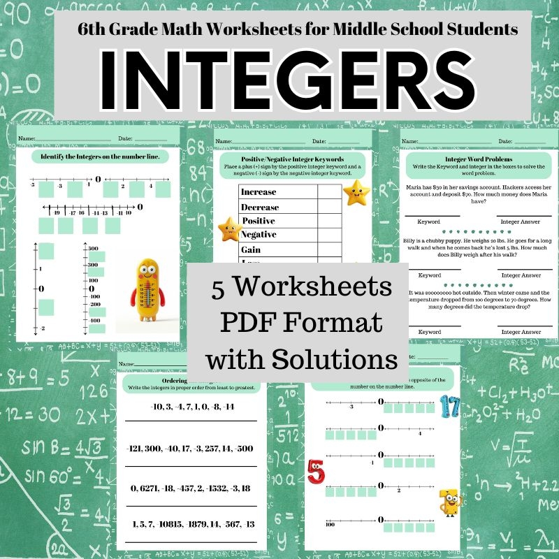 INTEGERS 6th Grade Math Worksheets For Middle School Classful