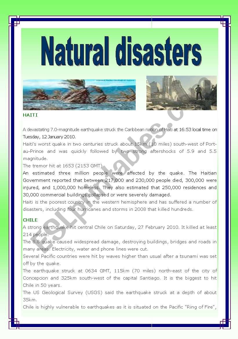 Reading Comprehension Natural Disasters ESL Worksheet By Aaisha86