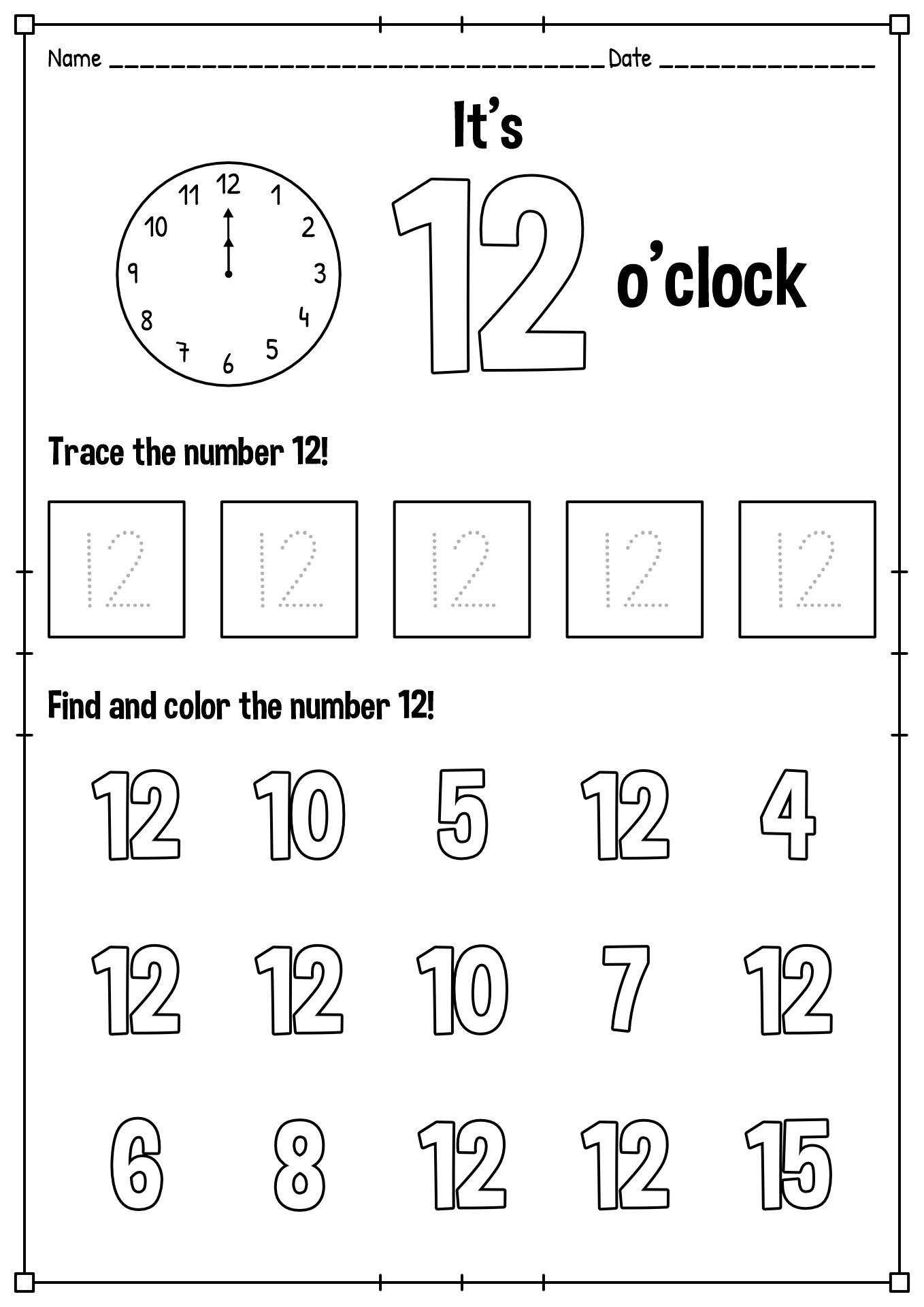 Number 12 Worksheets PDF