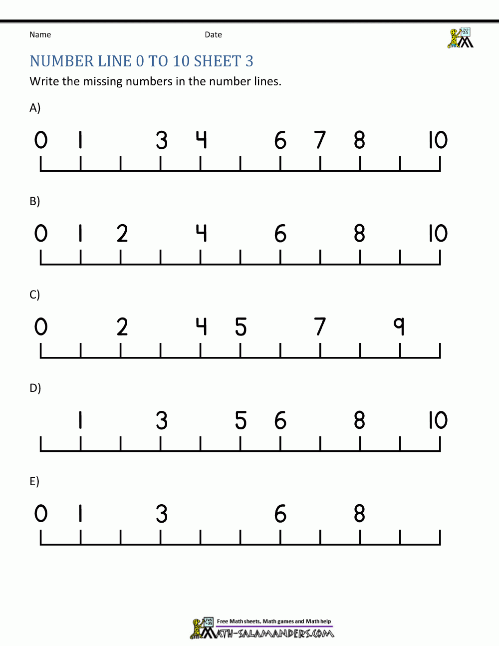 Number Line Math Worksheets For Kindergarten