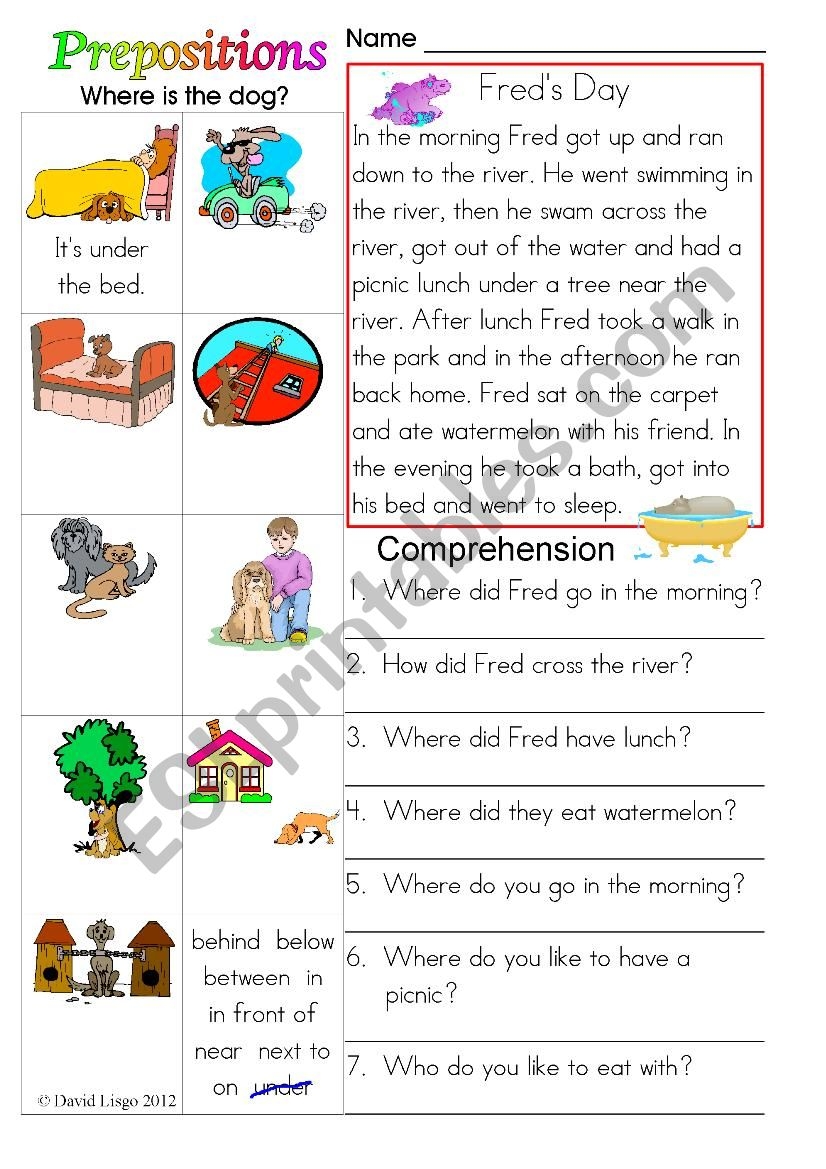 Prepositions Fred s Day In Colour And Grayscale ESL Worksheet By David Lisgo