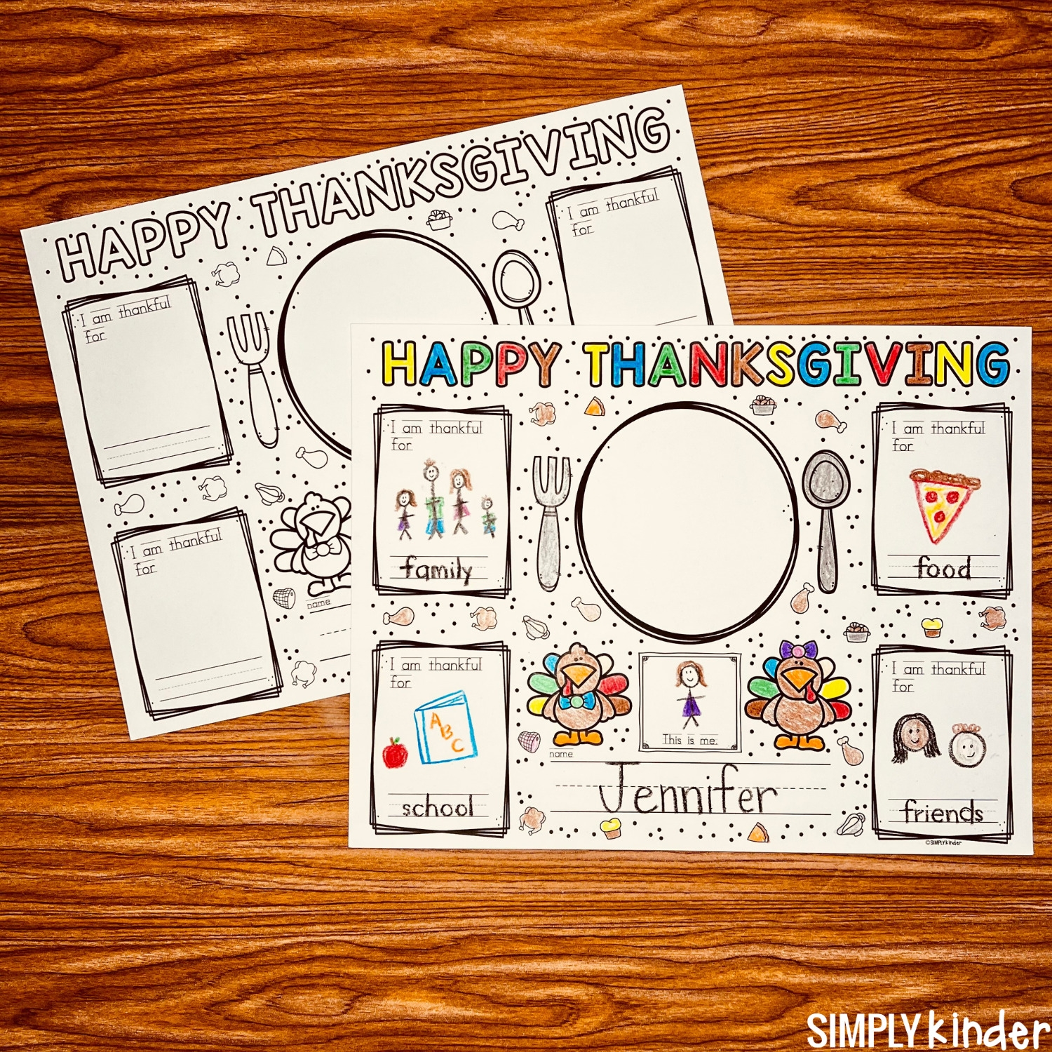 Thanksgiving Placemats Free Printable For Kindergarten Simply Kinder