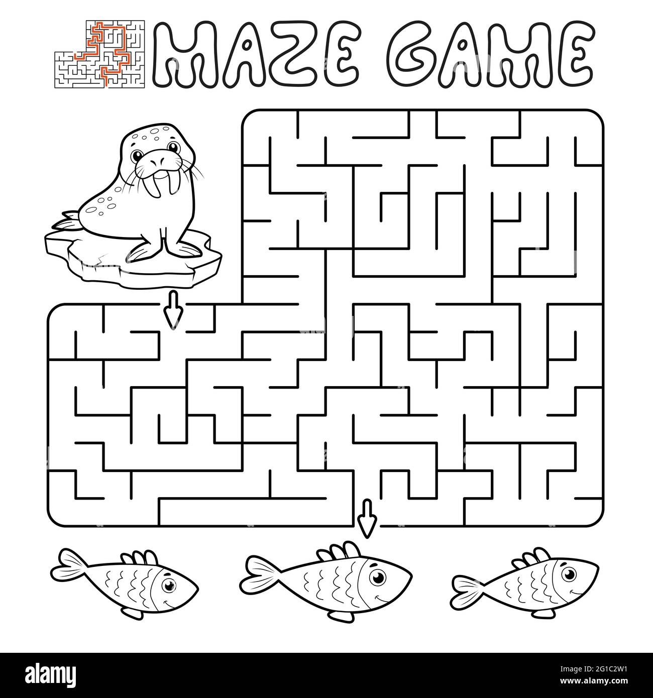 Maze Puzzle Game For Children Outline Maze Or Labyrinth Game With Walrus Vector Illustrations Stock Vector Image U0026 Art Alamy