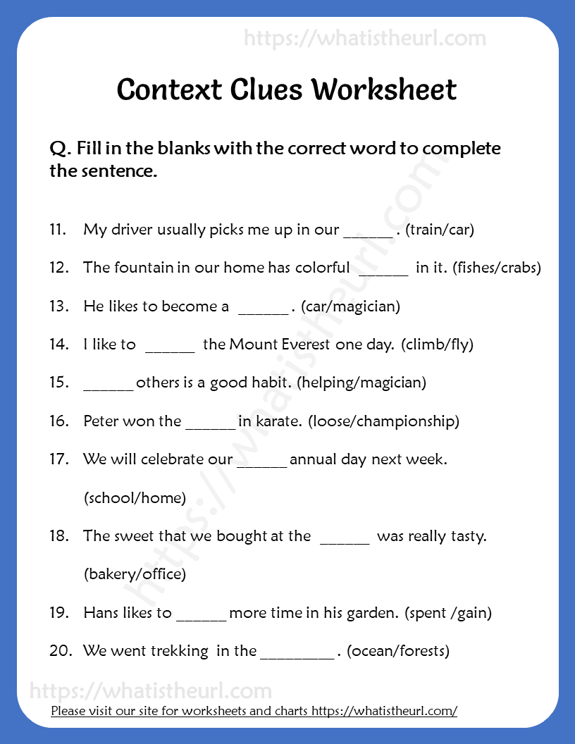 These worksheets typically include passages or sentences where certain words are underlined or highlighted. Your task is to identify the context clues that can help you figure out the meaning of the highlighted words. This process not only improves your vocabulary but also enhances your overall reading comprehension abilities.