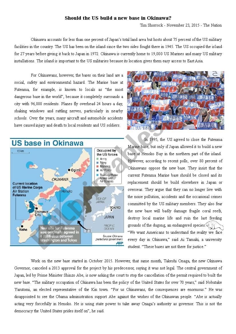 Newspaper Articles Reading Comprehension Activity ESL Worksheet
