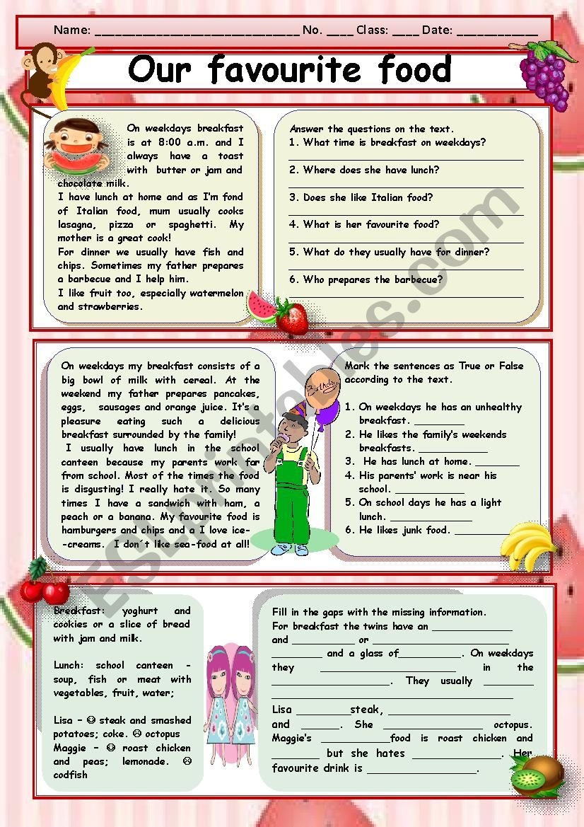 MY FAVOURITE FOOD Reading Comprehension ESL Worksheet By Spyworld