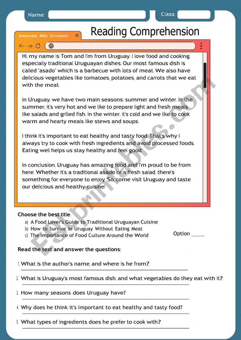 Furthermore, practicing reading comprehension with cooking-themed worksheets can improve your ability to follow instructions, interpret recipes accurately, and learn about different cuisines from around the globe. You’ll sharpen your comprehension skills while discovering new flavors and culinary traditions.