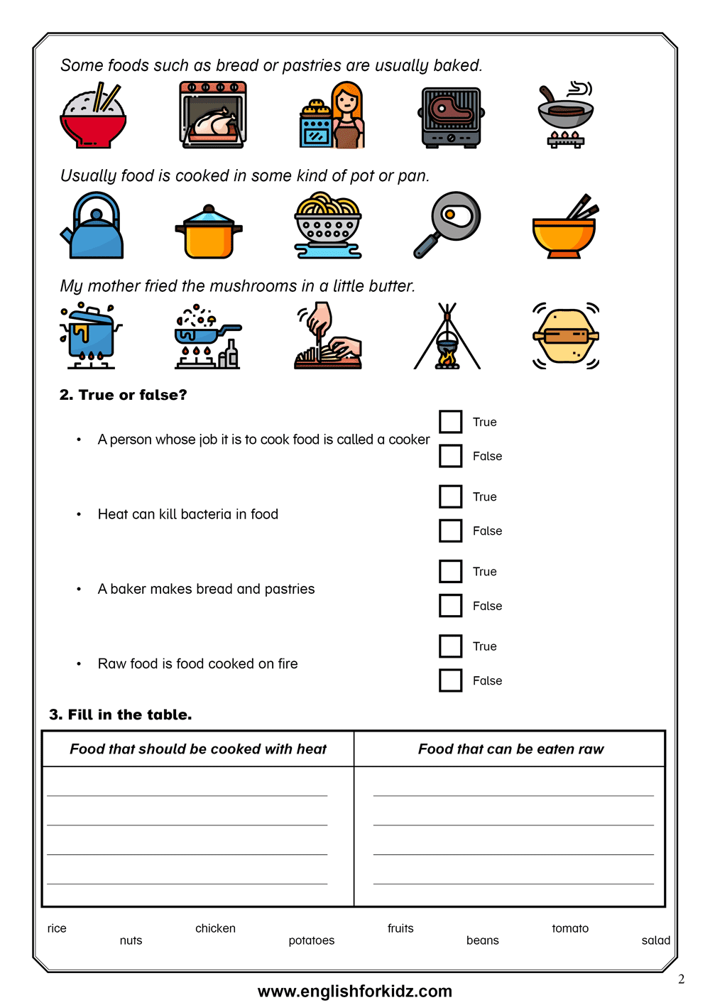English For Kids Step By Step Reading Comprehension Worksheets Food And Cooking