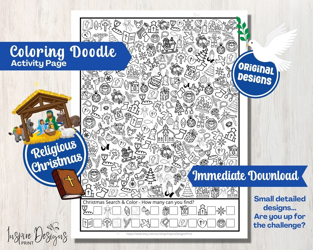 Religious Christmas Search U0026 Color Doodles I SPY Printable Counting Page Adults And Kids Holiday Vacation Party Activity Craft Sheet Etsy