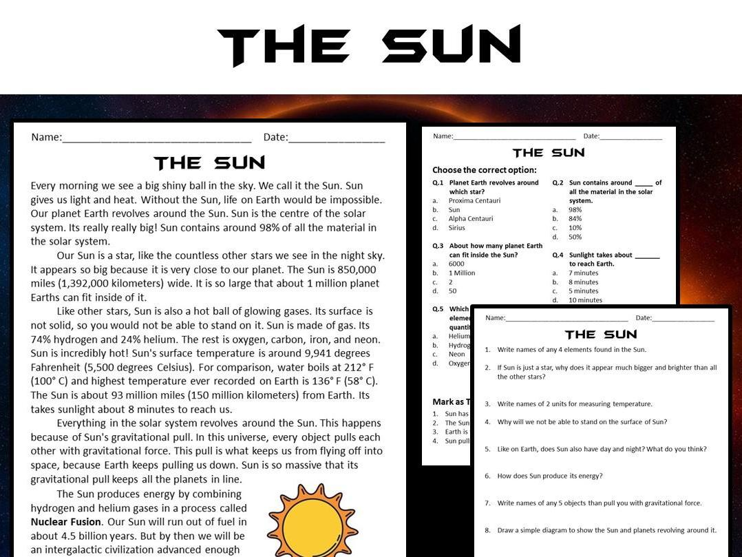 The Sun Reading Comprehension Passage And Questions PDF