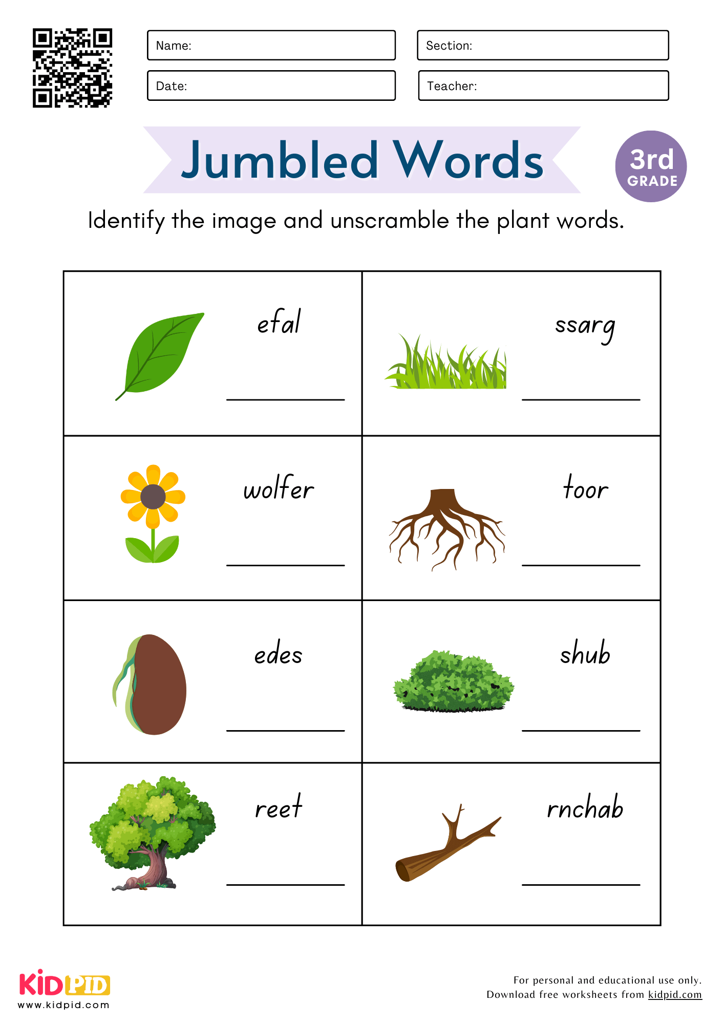 Jumbled Plant Words Worksheet For Grade 3 Kidpid