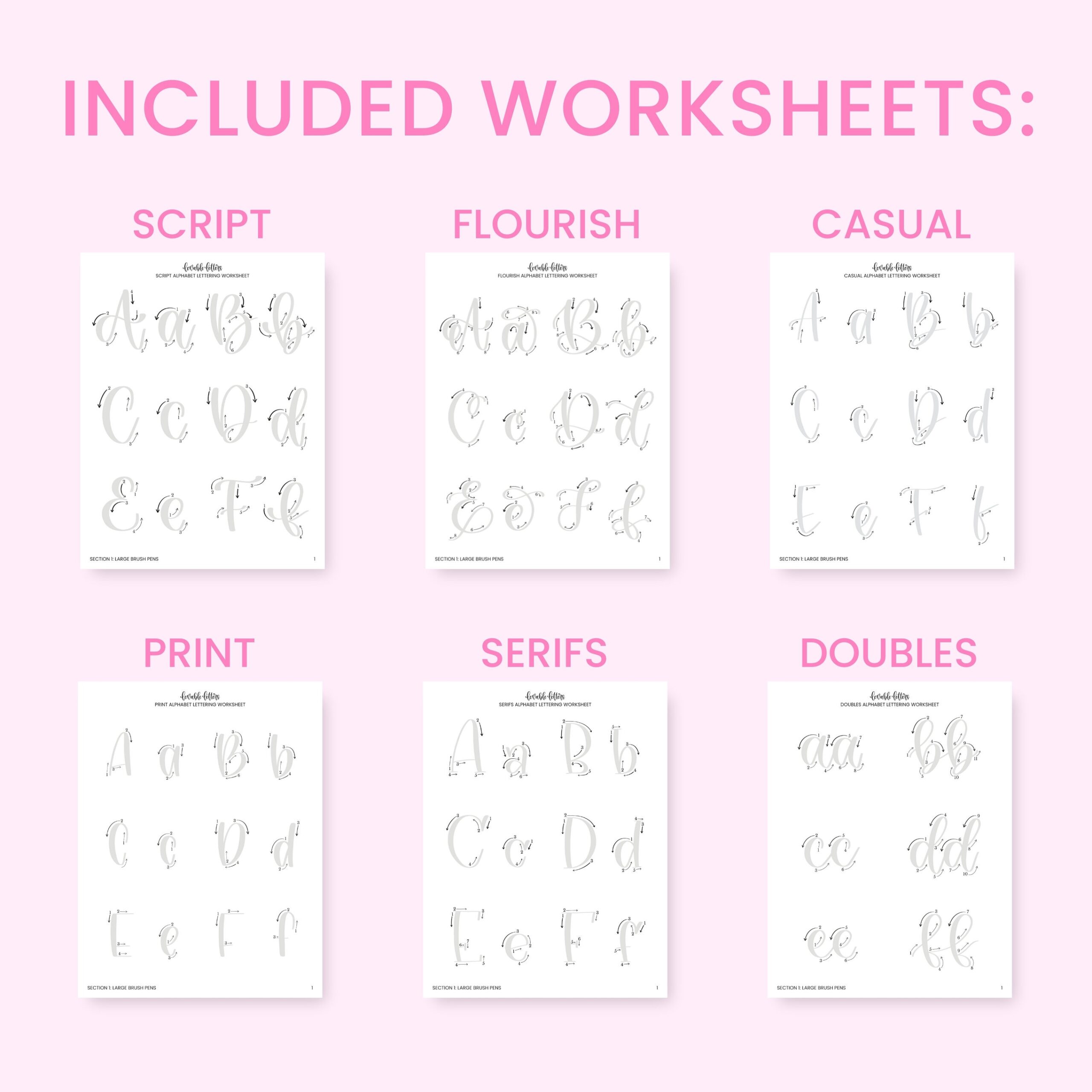Beginner Lettering Worksheet Bundle Learn To Letter Lettering Beginners Hand Lettering And Modern Calligraphy Guide Script Practice Etsy