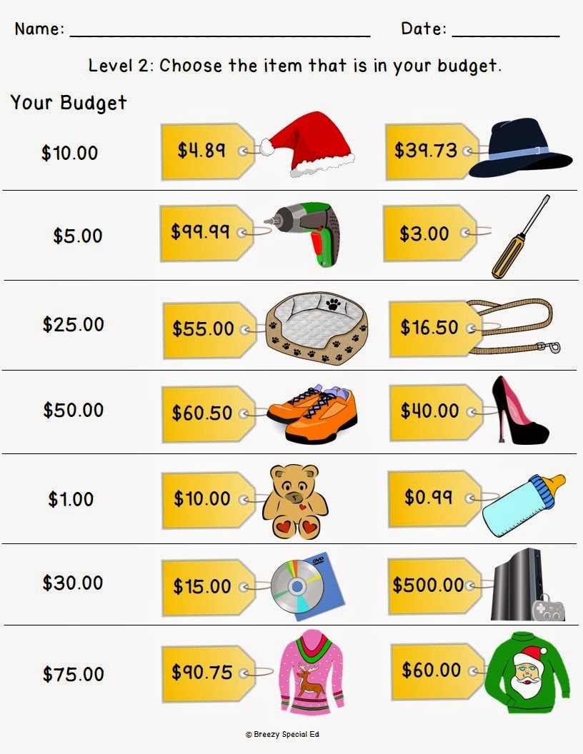 Christmas Holiday Shopping Worksheets For FREE Breezy Special Ed