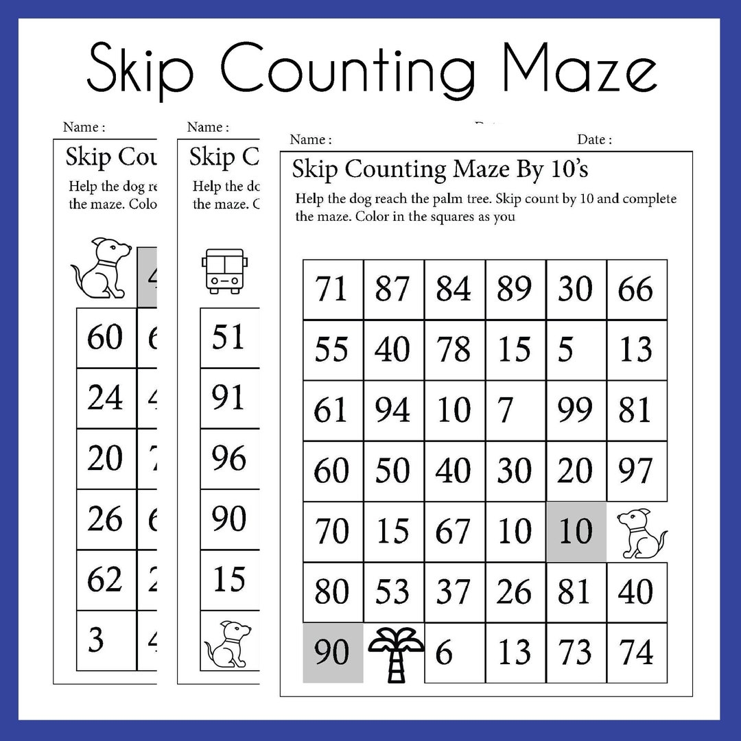 Skip Counting Maze By 2s 5s 10s 3s 7s Worksheets printable PDF Download Grade Levels 1st 3rd Homeschool Etsy
