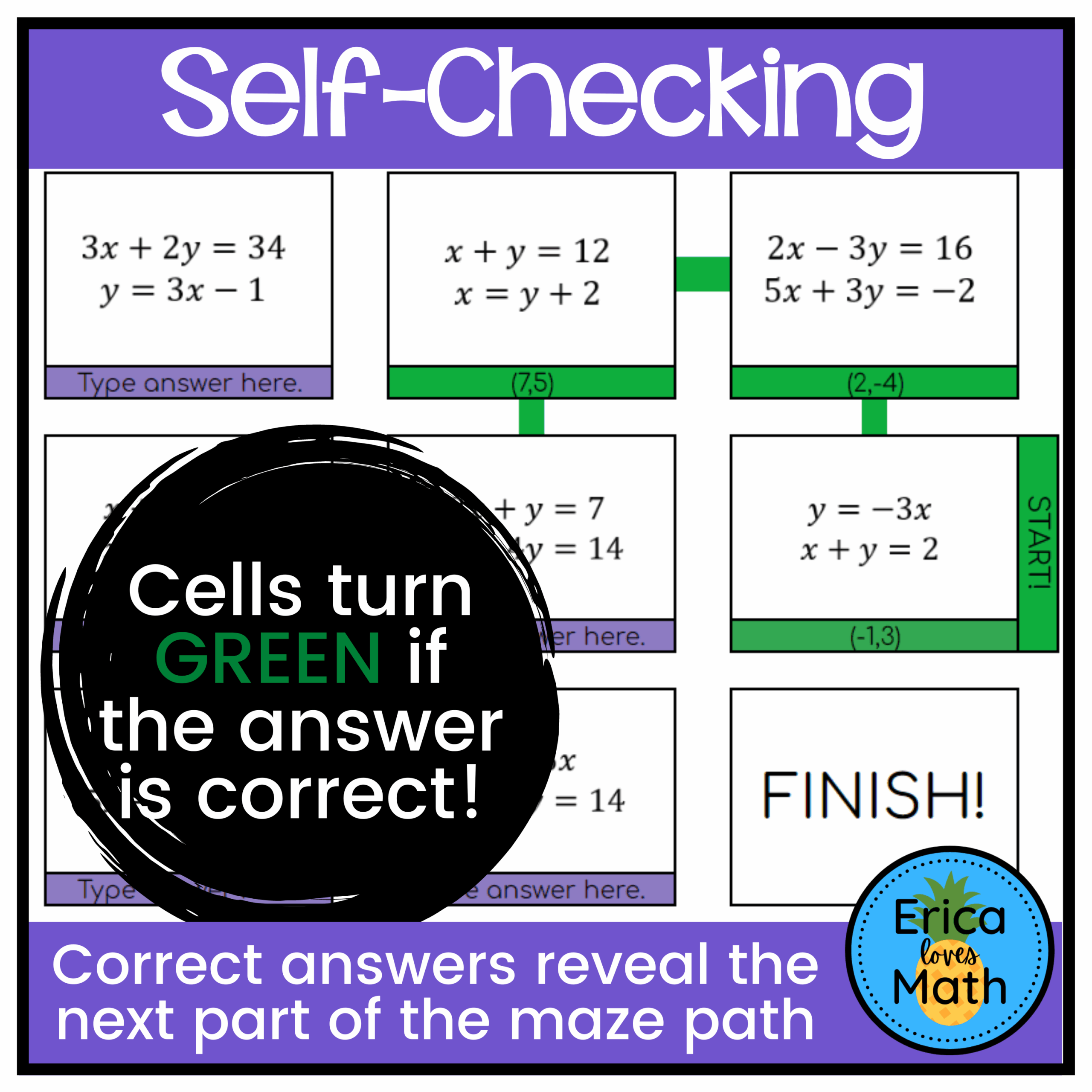 Solving Systems Of Equations Digital Activity Self Checking Maze Made By Teachers
