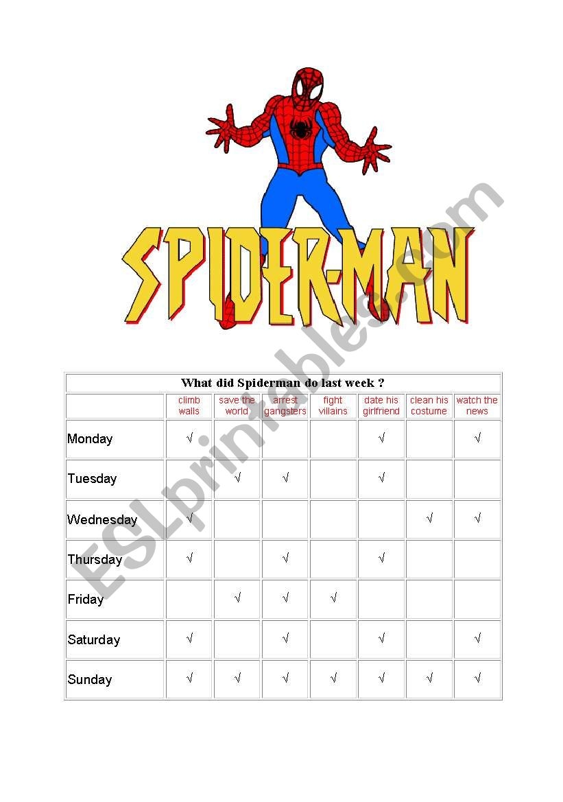 What Did Spiderman Do Last Week ESL Worksheet By Storyteller