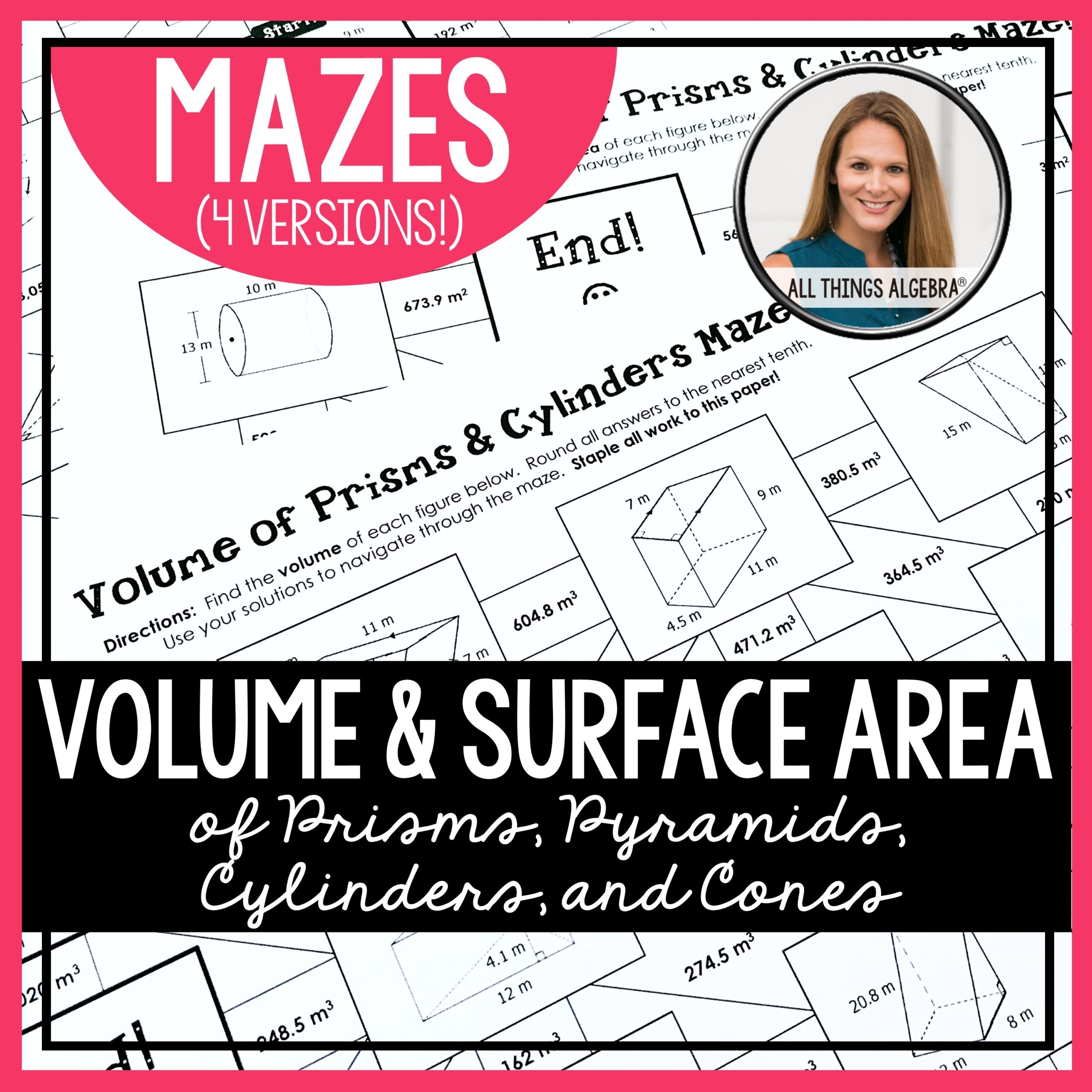 Volume U0026 Surface Area Mazes for HS Geometry All Things Algebra
