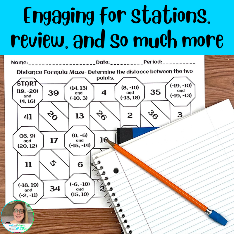 5 Distance Formula Mazes Between Two Points Printable Worksheet Activities Math And Science Sarah