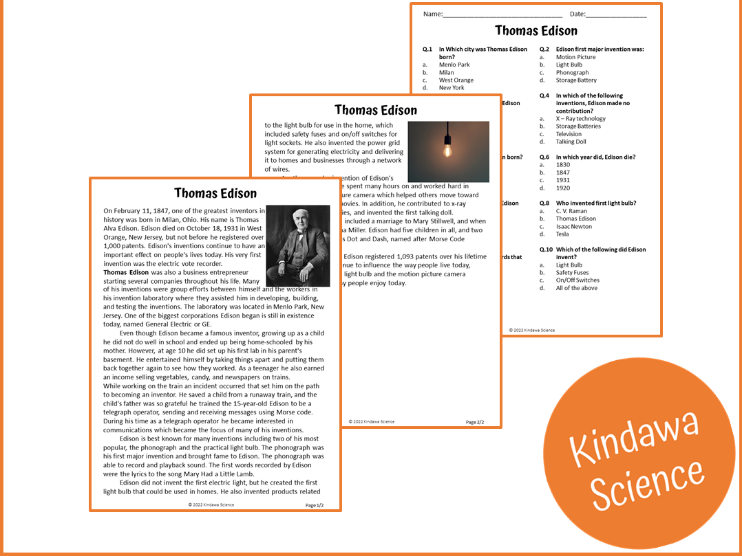 Thomas Edison Reading Comprehension Passage U0026 Questions Made By Teachers