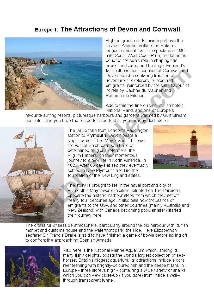 Cornwall And Devon Reading Comprehension Holidays Tourist