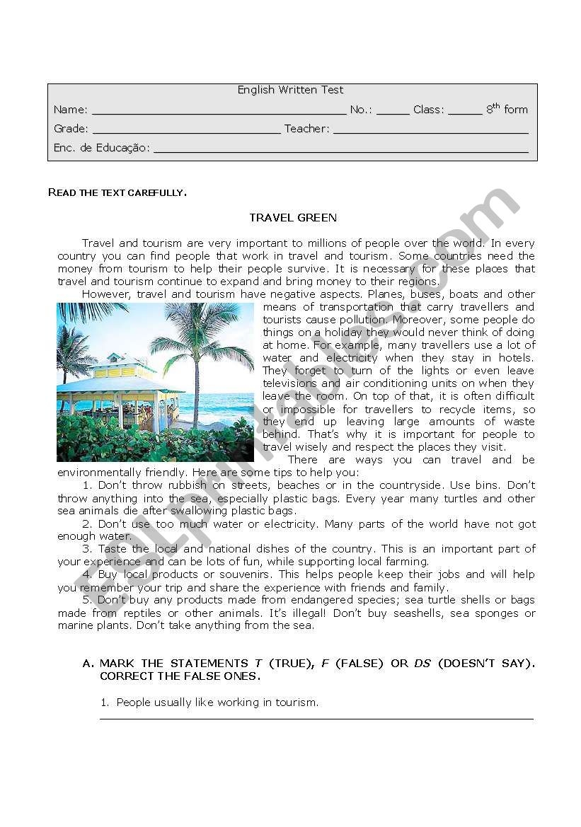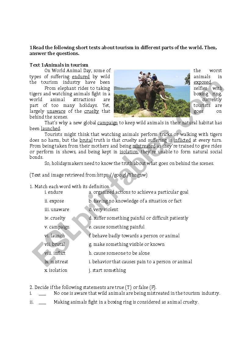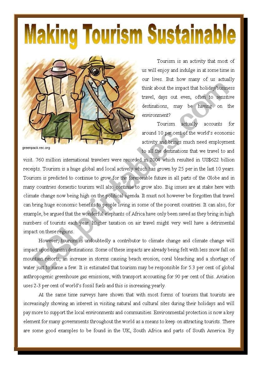 Tourism And The Environment ESL Worksheet By Paula esl