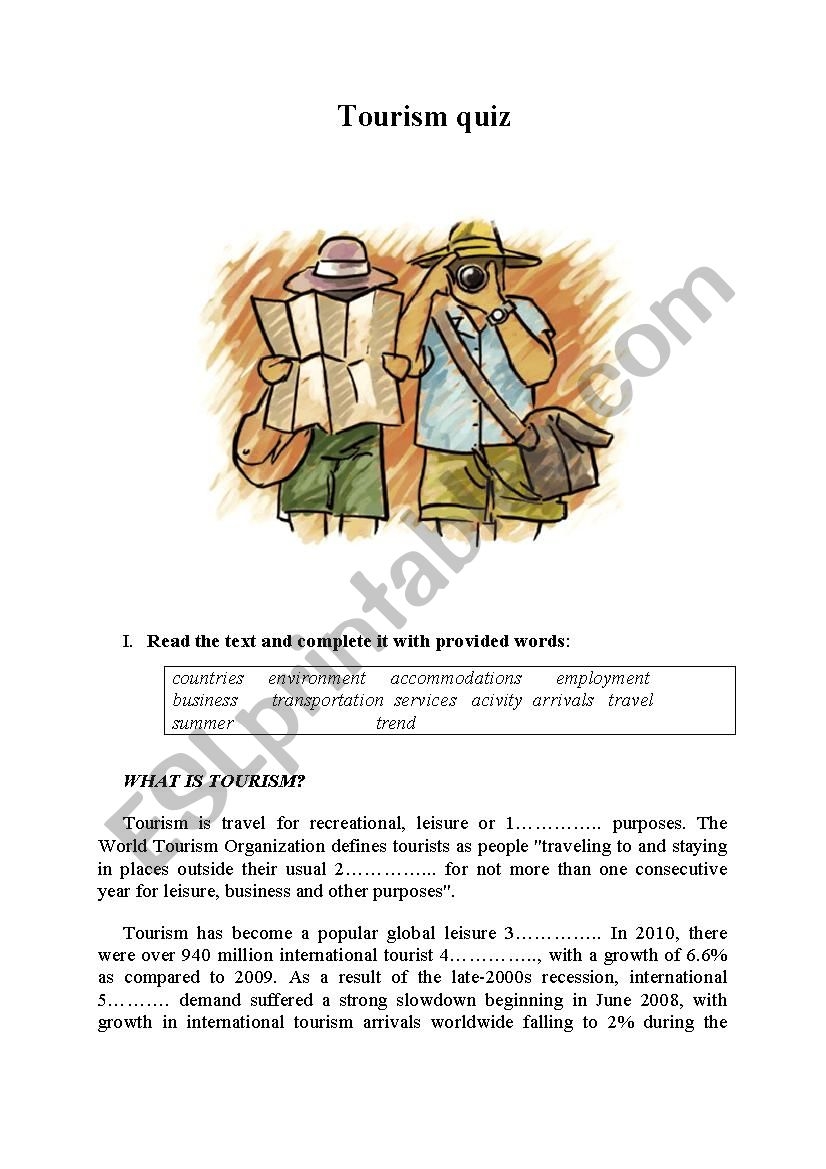 Tourism Reading Comprehension Worksheet