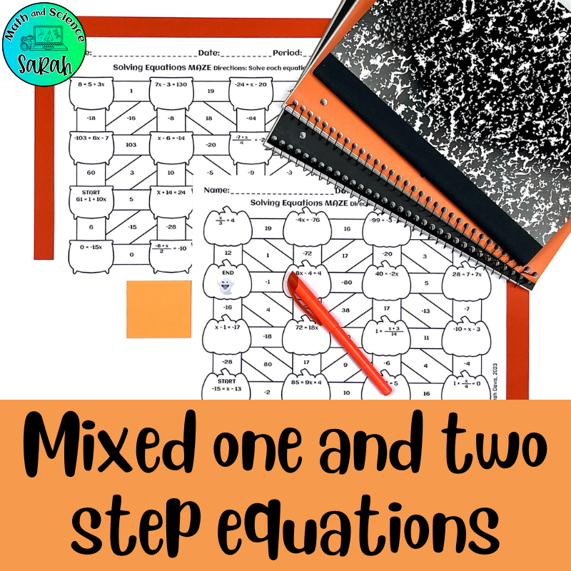 4 Solving One U0026 Two Step Equations Halloween Mazes Algebra Worksheet Activities Math And Science Sarah