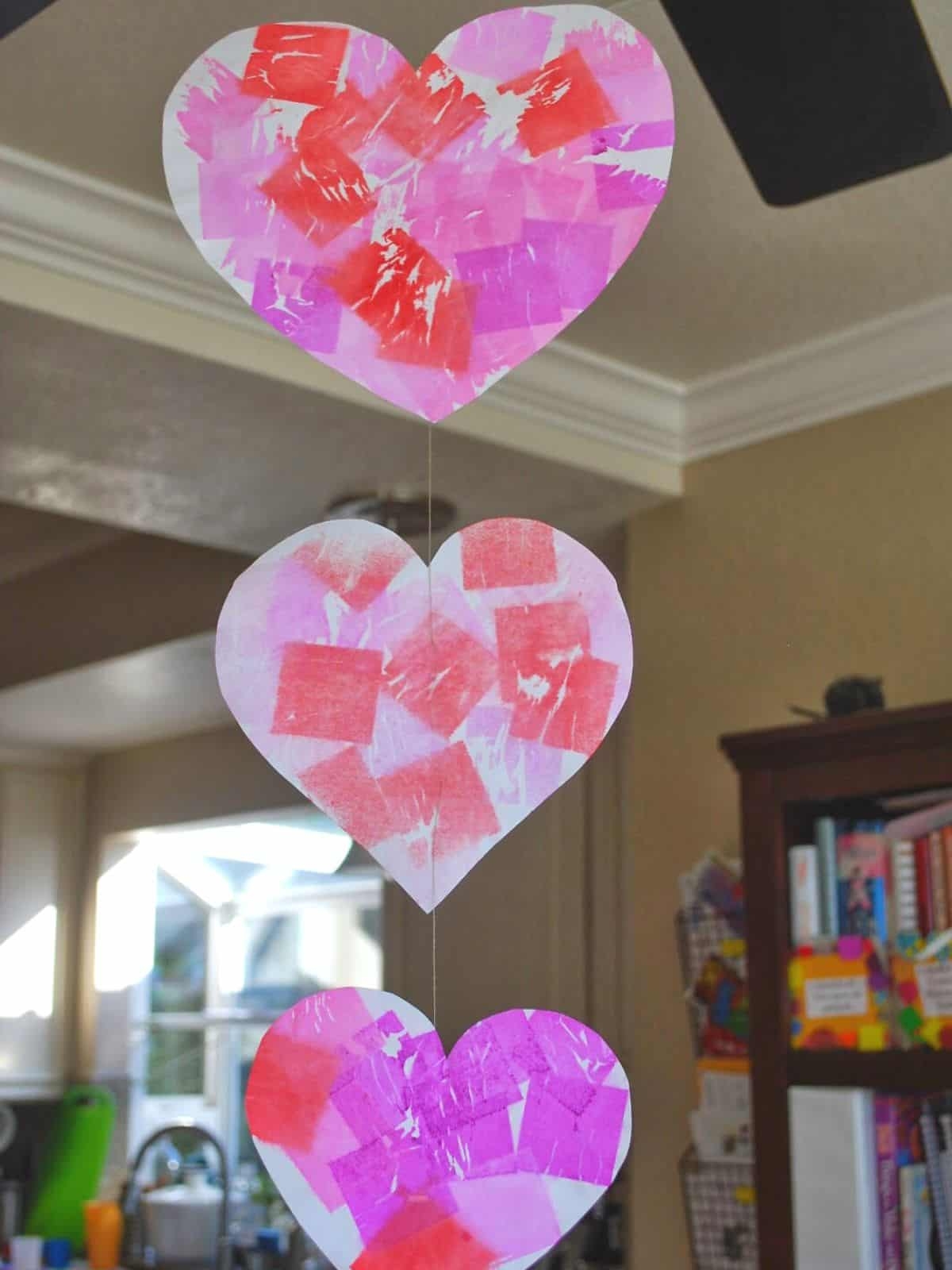 Valentine s Day Mobile Using Tissue Paper Hearts Mess For Less