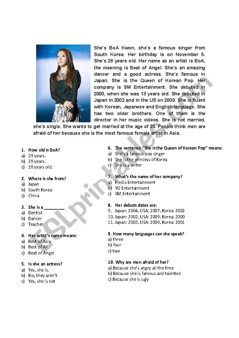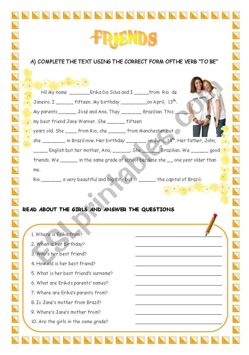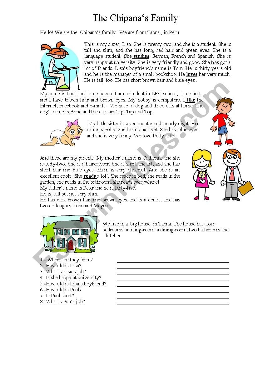 READING COMPREHENSION VERB TO BE ESL Worksheet By Sandramendoza