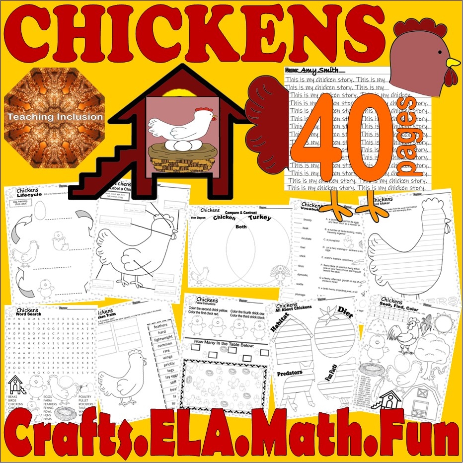 Chickens Life Cycle NO PREP Activities Worksheets ELA Science Math Craft Zoology Classful